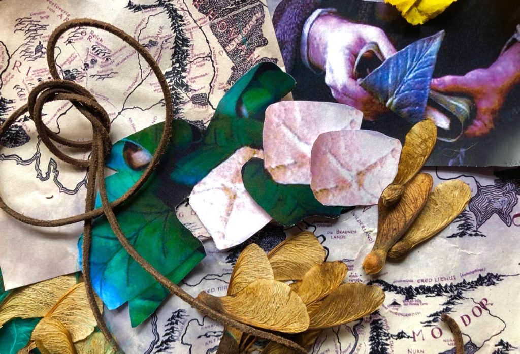 Also Lembas-Brot, auch Reise- oder Wege-Brot genannt: Es ist ein extrem nahrhaftes Brot, das mit nur einem einzigen Bissen für einen ganzen Tag satt macht. In Blätter von bestimmten Pflanzen eingewickelt, hält es sich besonders lange frisch. Außen ist es von einem sehr hellen Braun und innen cremig hell. Seine Konsistenz ist sehr knusprig, mehr wie Knäckebrot, nicht wie eine Semmel. Gebacken wird es aus einem Getreide ähnlich dem Weizen – wobei das Rezept natürlich strengstens geheim und von den Elben gehütet ist. Diese rücken das Lembas-Brot auch nur in sehr, sehr seltenen Fällen heraus. Insbesondere Menschen geraten durch Verzehr von zu viel Brot in Versuchung, sich nach der Unsterblichkeit der Elben zu sehnen – nicht gut!