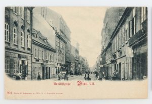 *Neustiftgasse: C. Ledermann jun. (auch: Karl Ledermann) (Hersteller), 7., Neustiftgasse – allg., Ansichtskarte, um 1898, Wien Museum Inv.-Nr. HMW 17788/502.