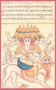 *Ganesha als heramba: Reproduction from the Śrītattvanidhi („The Illustrious Treasure of Realities“), an iconographic treatise compiled in the 19th century in Karnataka, India. Wikipedia.