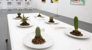 Der Tisch ist gedeckt, die Menüfolge liegt bereit, die Teller sind gefüllt: mit Kakteen. Dieses Desertification Dinner wurde eigens für die Ausstellung im Dom Museum Wien entwickelt.